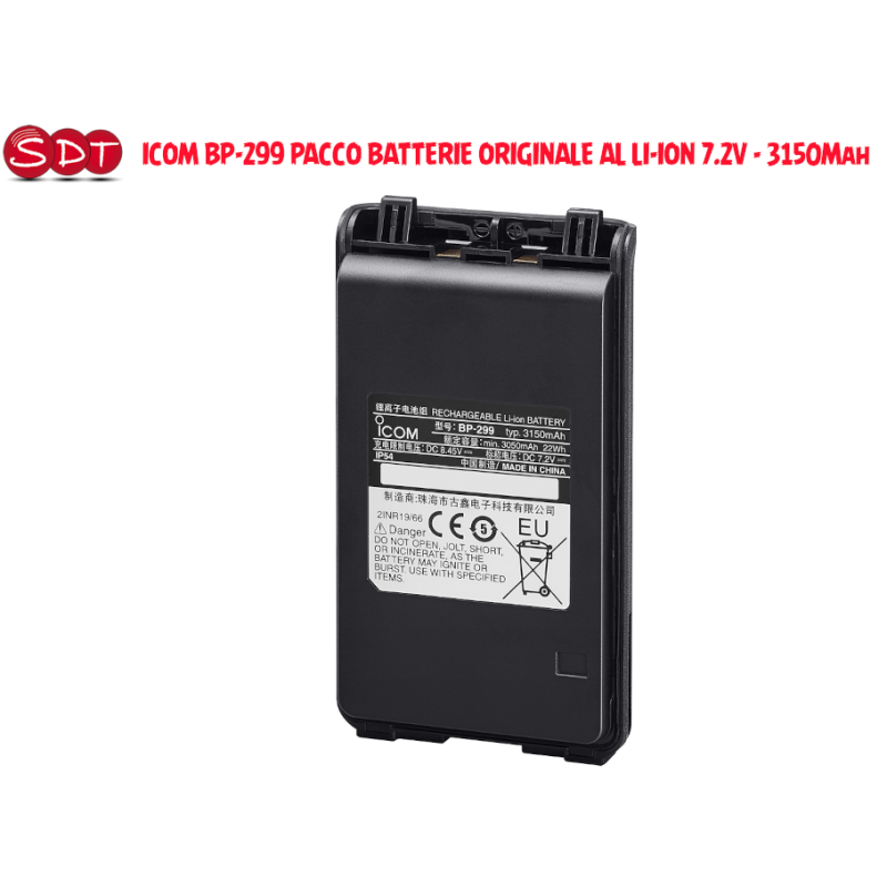 Icom BP-299 IP-54 * Pacco batteria ORIGINALE LI-ION 7,2V - 3150Mah per IC-V80E, T70E, F3002/F4002, IC-F27